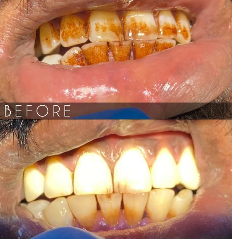 🦷 Step 1: Plaque & Tartar Removal – Using an ultrasonic scaler, we gently remove plaque and tartar deposits.
